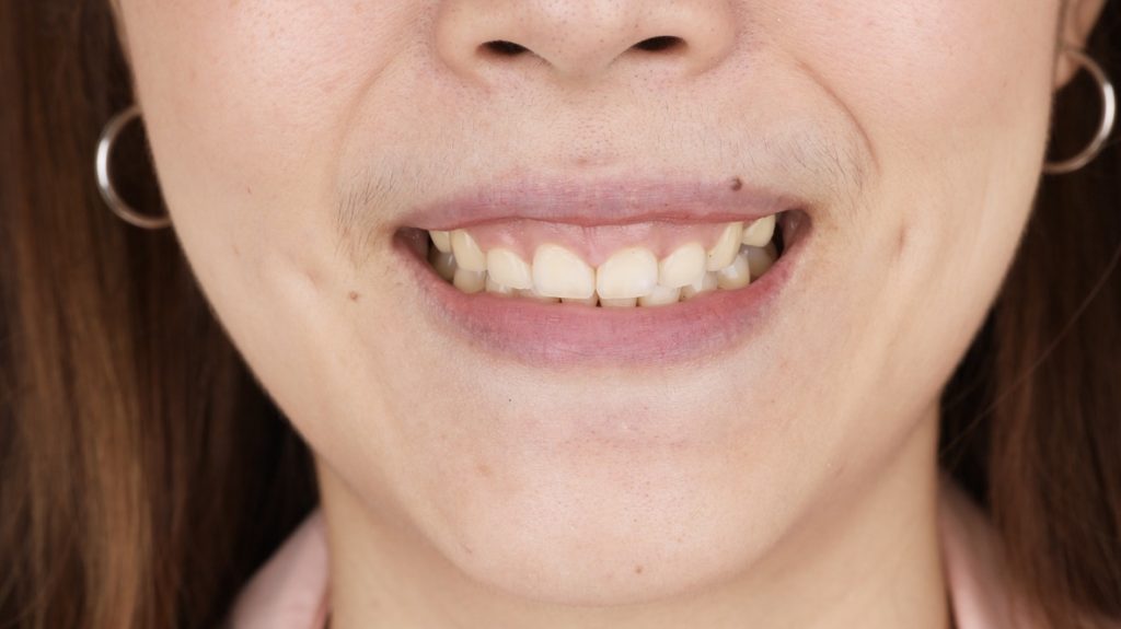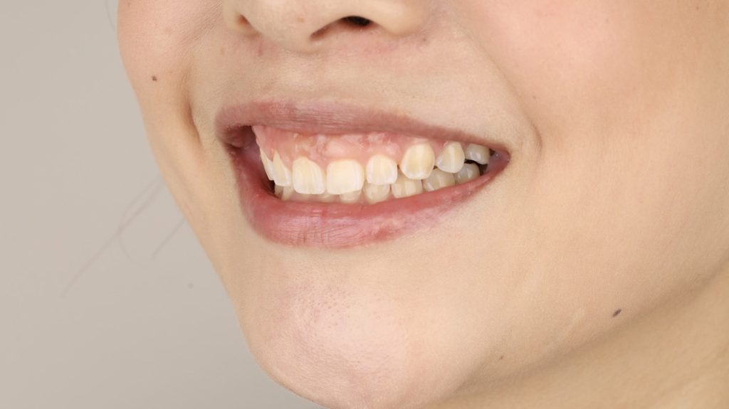 - ยิ้มแล้วเห็นกระดูกขอบเหงือกปูดนูน ปากอูม